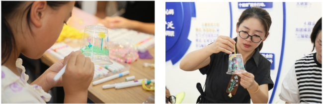 制作过程中,家长和孩子分工协作,有的负责勾勒创意图案,有的专注裁剪杯身,有的精心搭配装饰,现场满是欢声笑语。“平时喝完奶茶,杯子随手就扔了,这次和孩子一起动手,不仅锻炼了他的创造力,还让他明白了‘垃圾只是放错地方的资源’。”参与活动的张女士拿着亲子共同完成的“星空风铃”,不住地向身边人展示。两个小时后,一个个造型各异的奶茶杯风铃新鲜出炉,有的像绽放的花朵,有的像可爱的小动物,微风拂过,叮当作响,成为现场最亮眼的风景。